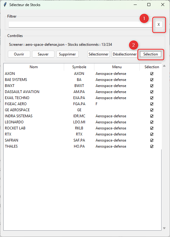 - (1) : Le fichier de screener sélectionné ici aero-space-defense.json