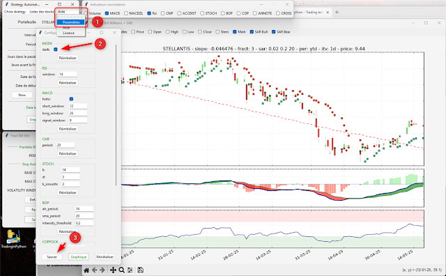 Et vous passé votre la graphe du cours de l'action en mode sombre.