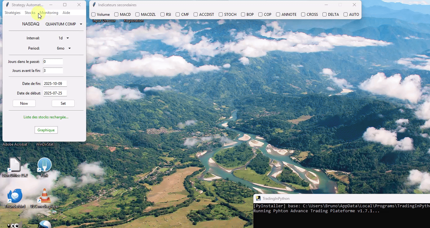 Les indicateurs techniques sont calculés à intervalle régulier et les alertes sont vérifiées pour prévenir l'utilisateur.