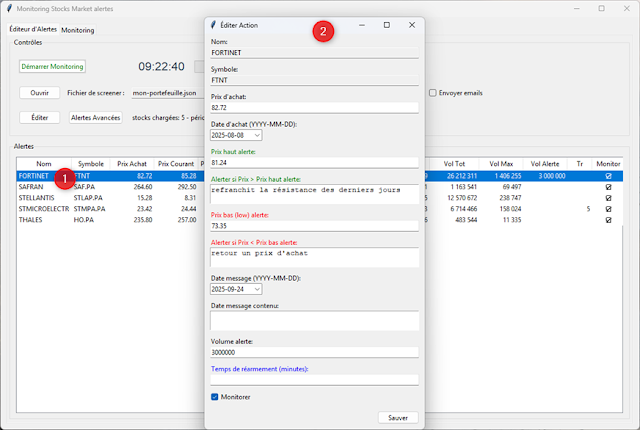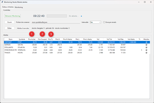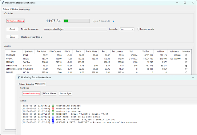 Vous souhaitez être prévenu sur les volumes d'échanges, et sur tout autre événement qui peut se produire sur la stock c'est l'objet du Monitor Stock Market : mettre le marché sous surveillance.