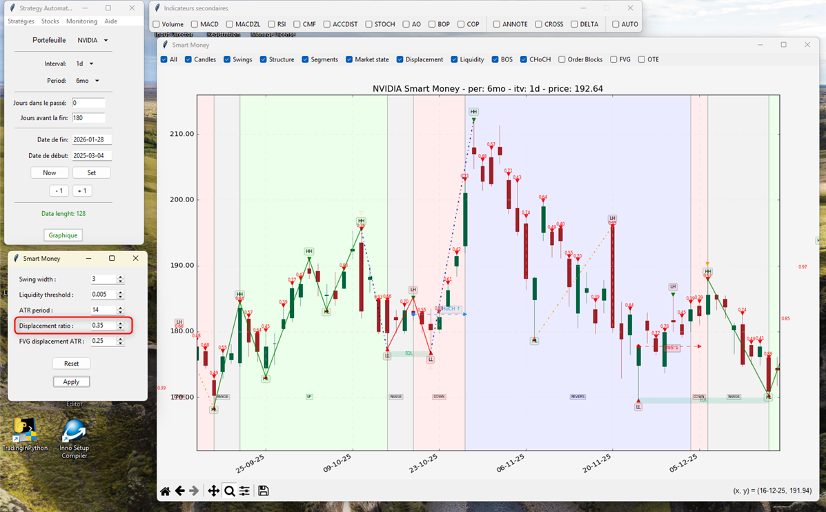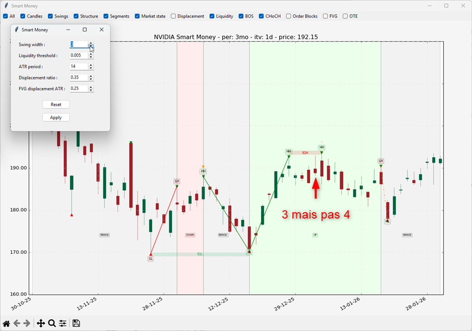 Les prises de liquidité de la Smart Money se font en général sur des bougies proches les unes des autres. Là encore vous pouvez régler graphiquement ce paramètre.