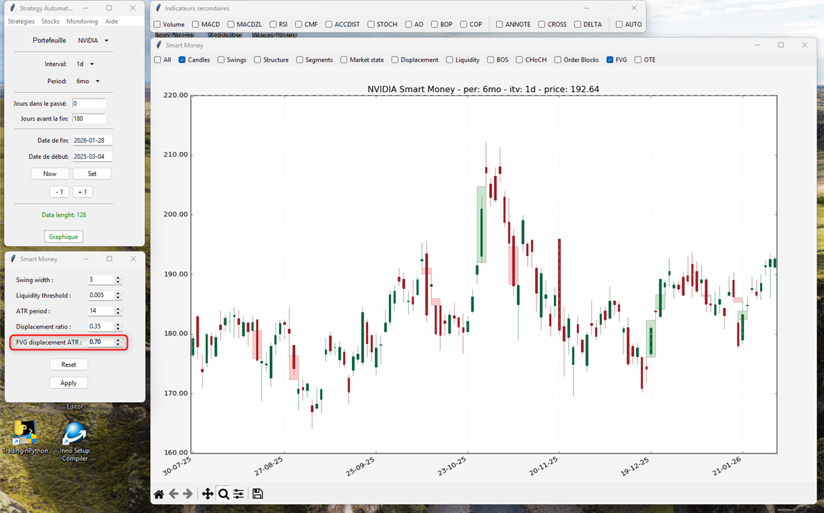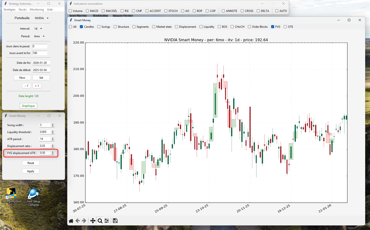 Le paramètre FVG displacement ATR permet de mesurer la force des FVG et de ne tenir compte que des FVG puissants.