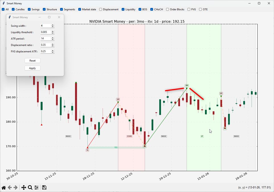 - Liquidity grabs : Prises de liquidités par la Smart Money