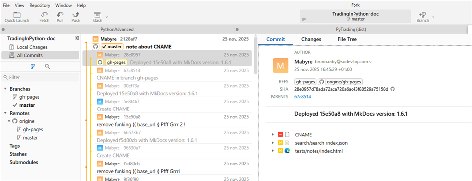 - avec fork postionnement dans gh-pages