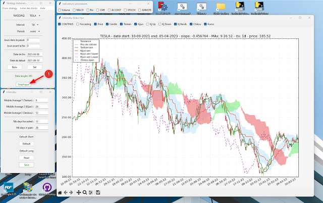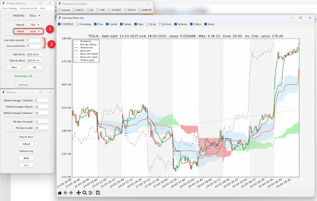 Ainsi pour regarder le cours de l'action TESLA en arrière de 3 jours sur une période de 10 jours vous avez la configuration suivante :