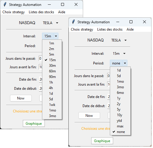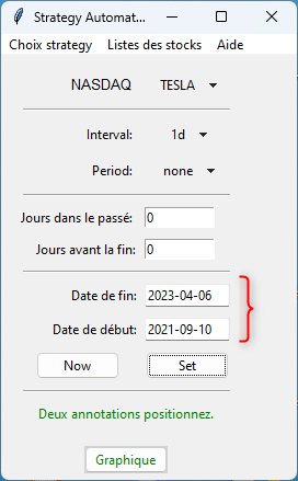 Sur la plateforme TradingInPython, le voyage dans le temps s'effectue à l'aide de la boite de dialogue "Strategy Automation".